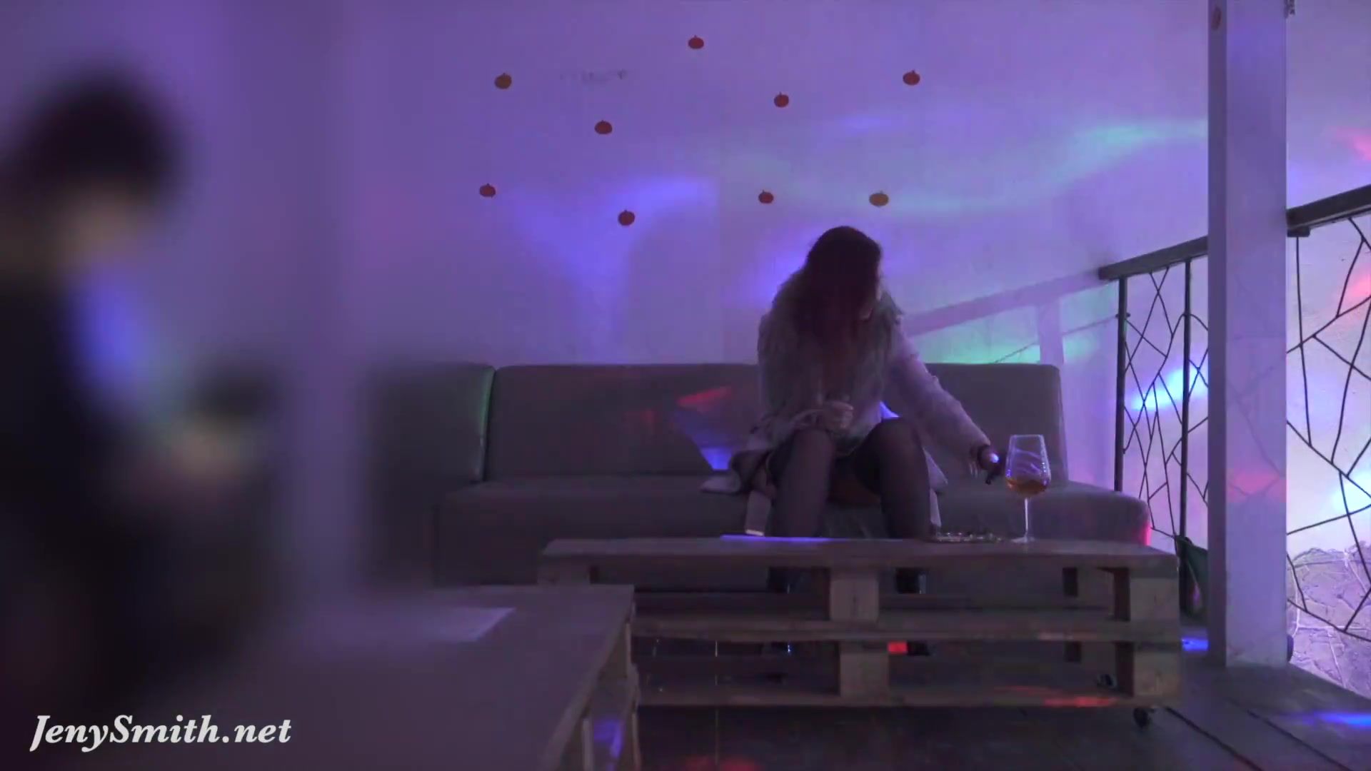 Jeny Smith teasing a stranger. Then he strokes her in a Night Club