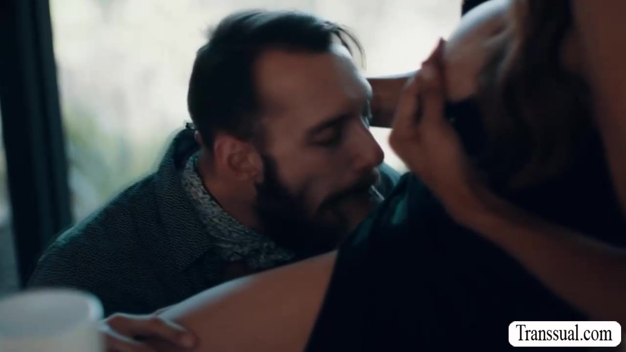Horny shemale stepmom goes down and lets her new stepson suck her hard tranny cock passionately.After that,she lets her stepson bend over and she then bareback fuck his tight wet ass so deep and fucking hard.
