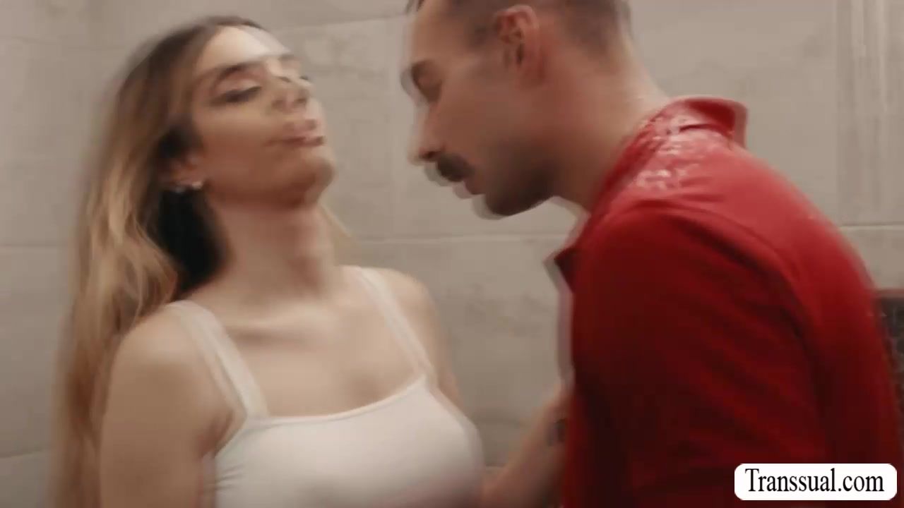Horny stepfather saw his gorgeous shemale stepdaughter doing her laundry.He rips off her jeans and then he barebacks her tight ass so hard.After that,they move into the bathroom and lets her throat his dick before he bareback fucks her ass again.