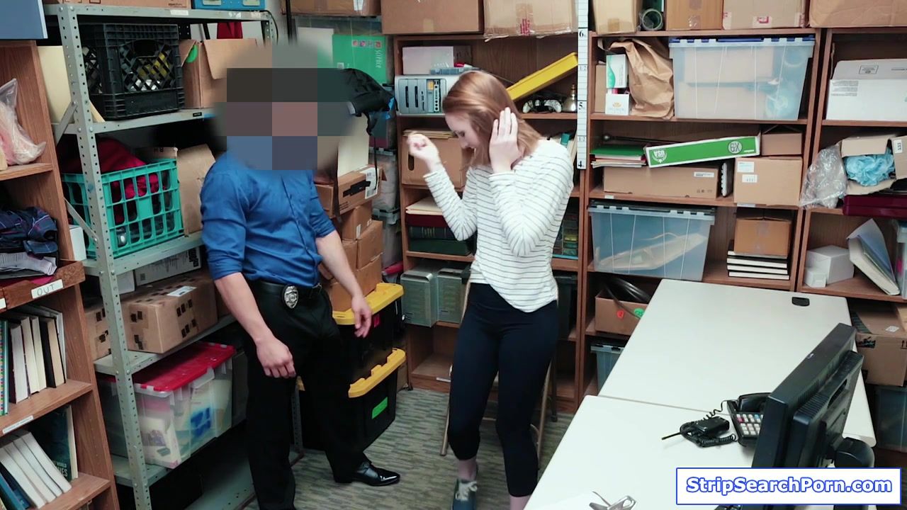 The store owners teen stepdaughter gets caught in a shoplifting activity.The officer conducts strip search getting her fully naked.She cooperates to avoid trouble then blowjobs his big cock.The guy fucks her hairy pussy while grabbing her small tits