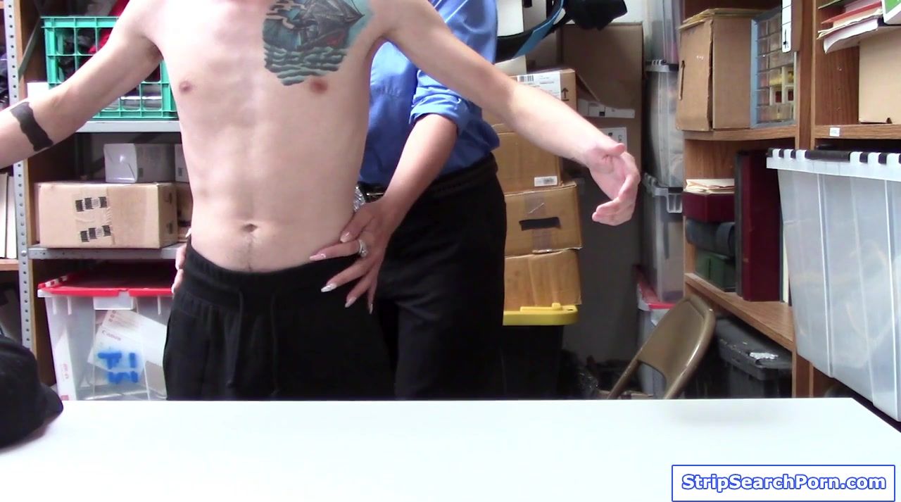 A college guy gets caught stealing.A big tits female officer files a report then conducts strip search.The horny milf gets turned on watching his big cock so she makes him lick her pussy in exchange for freedom.Then she blowjobs him and gets fucked.