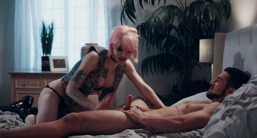 Pink haired Tbabe comforts her stepbrother in his room.They start kissing each other passionately and she then throats his hard big cock.In return,her stepbrother bareback fucks her tight wet ass so deep and hard.