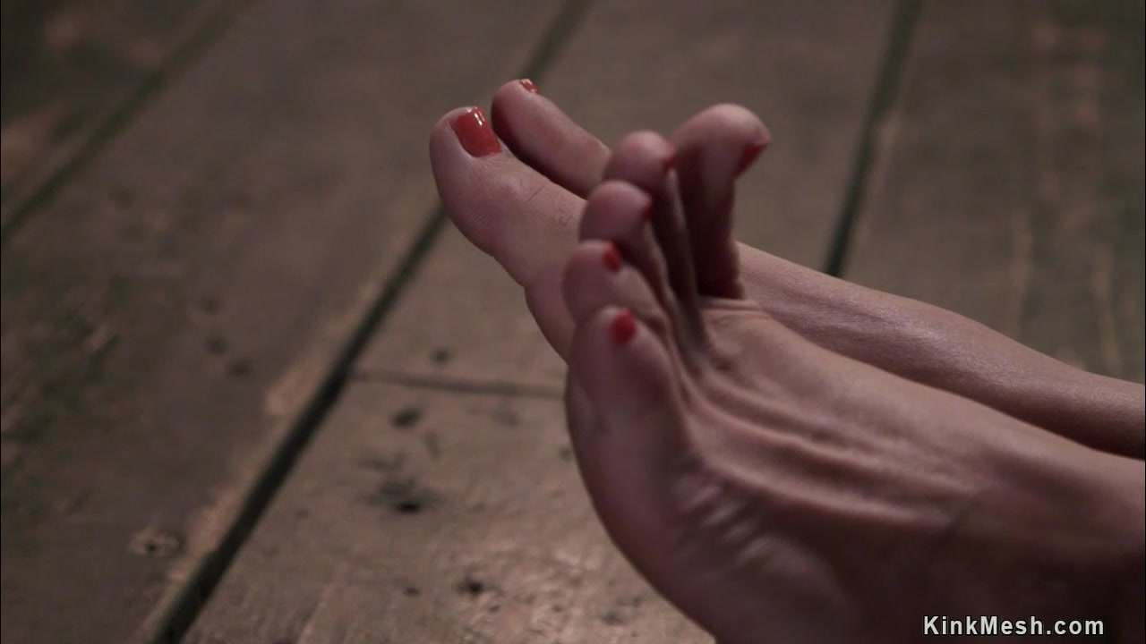 Gagged brunette hot slave Penny Barber gets mummified and hard whipped by master The Pope then chained in back bend into place gets pussy vibrated
