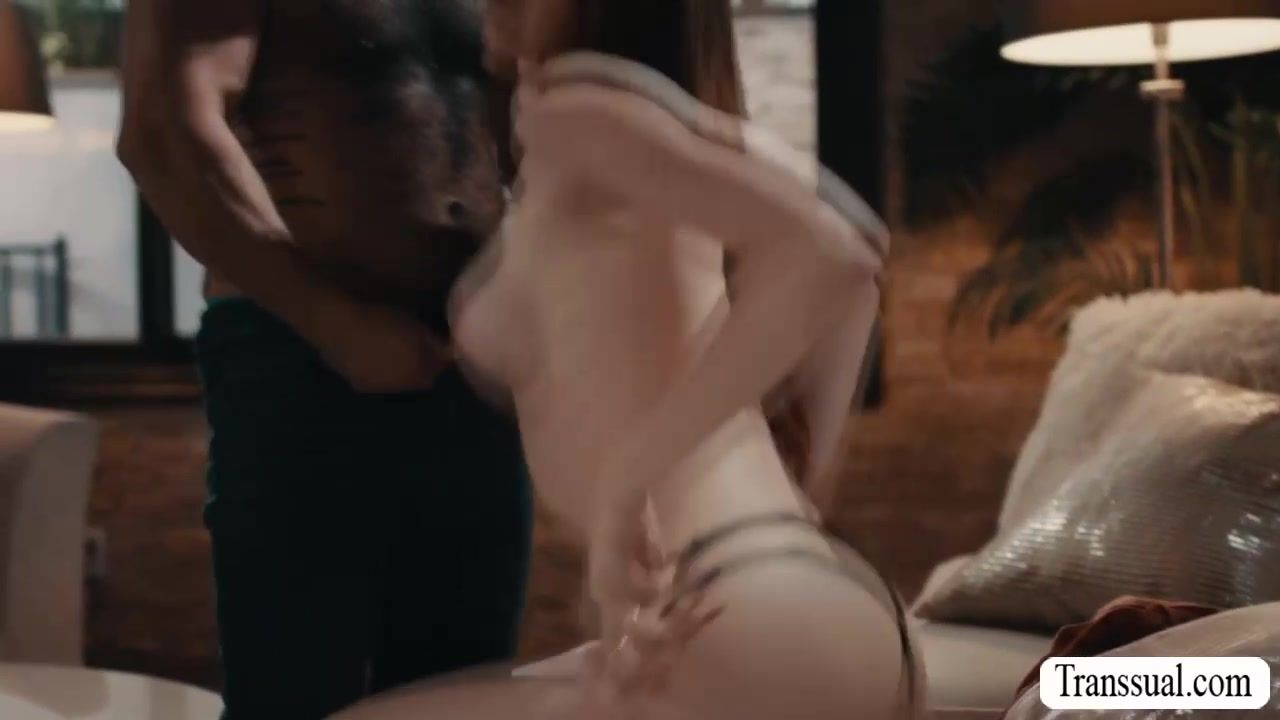 Busty shemale massaged by her fat stepdad while they are talking.After that,they get horny and start kissing each other.Next is,they throat each others hard big cock and she then licks the ass of her stepdad first before she barebacks it.