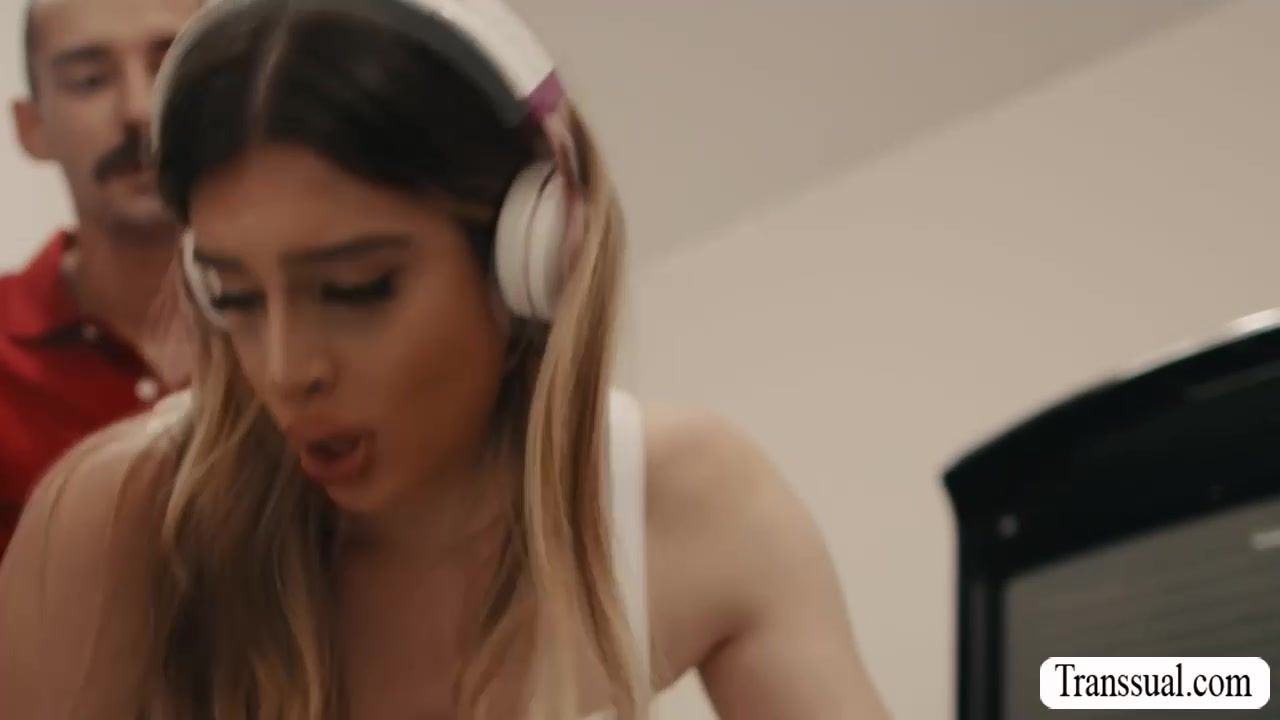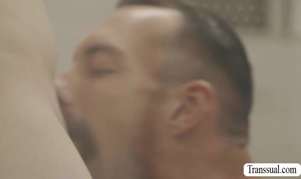 Horny stepdad watches his TS hot stepdaughter while hes jerking off his dick.After that,he rips off her jeans and he then barebacks her ass.Next is,they move into the bathroom and he then licks her ass before he bareback it again.