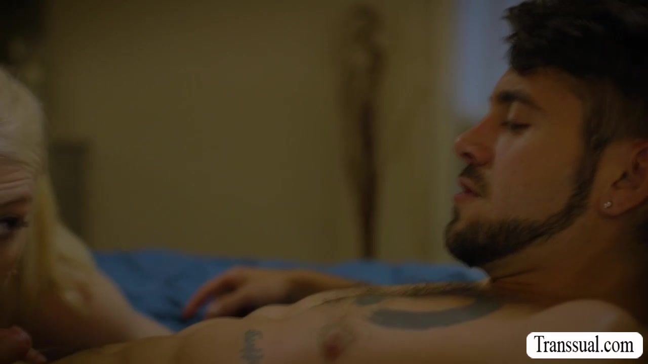 Perv stepbro closes the door of his shemale stepsisters room and then they start kissing each other on the bed.Next is,she throats the big hard cock of her stepbro passionately.In return,her stepbro bareback fucks her tight wet ass so deep and hard.