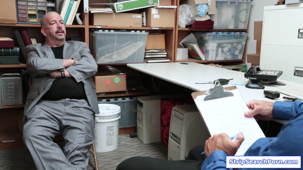 A guy and his stepdaughter get caught stealing.He negotiates with the officer to let them go in exchange of having sex with his stepdaughter.The officer strips her naked then throat fucks her.The teen spreads her legs and gets her shaved pussy fucked