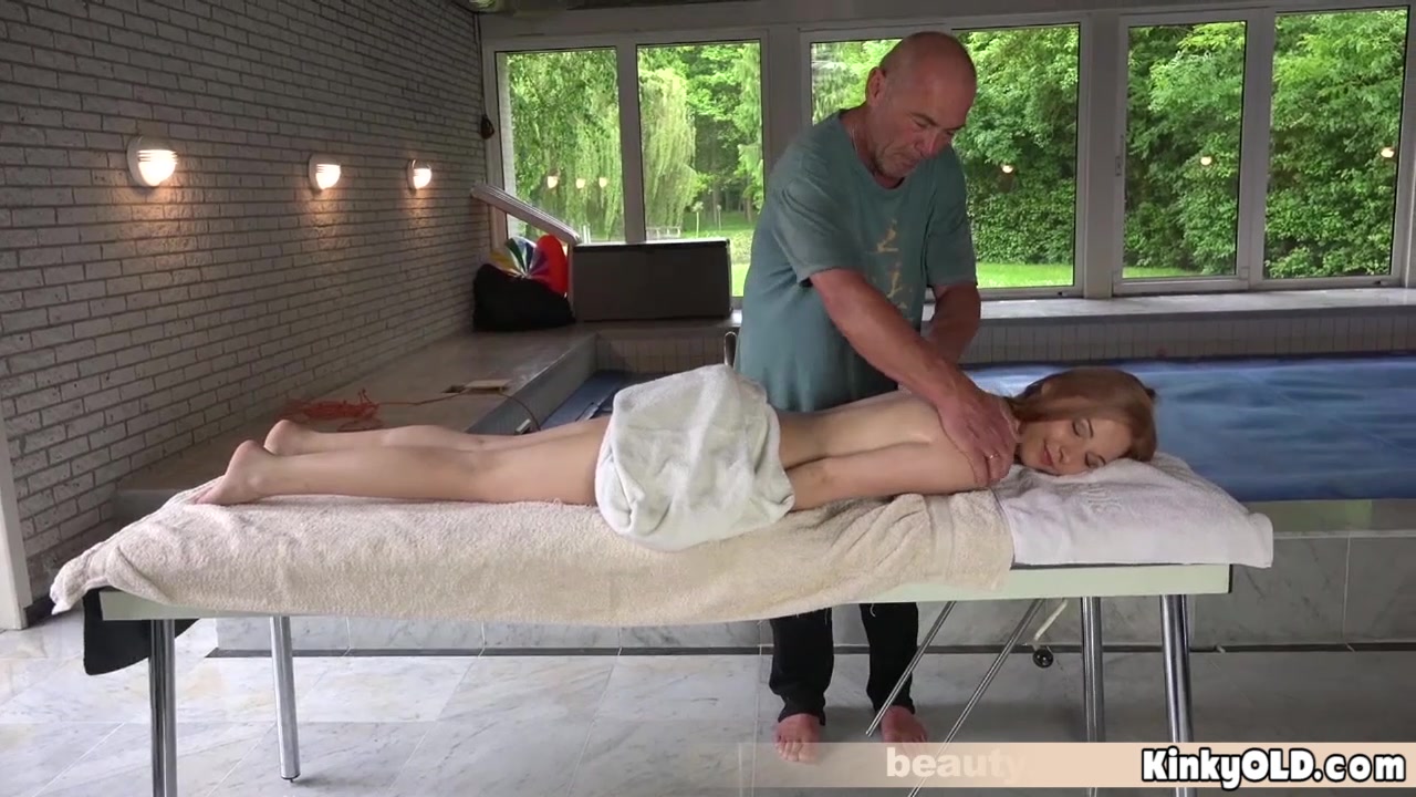Very old man gives a sensual massage to an all natural redhead teen Emily Rose with big tits what ends in taboo sex granpda fucks the shaved pussy in doggystyle