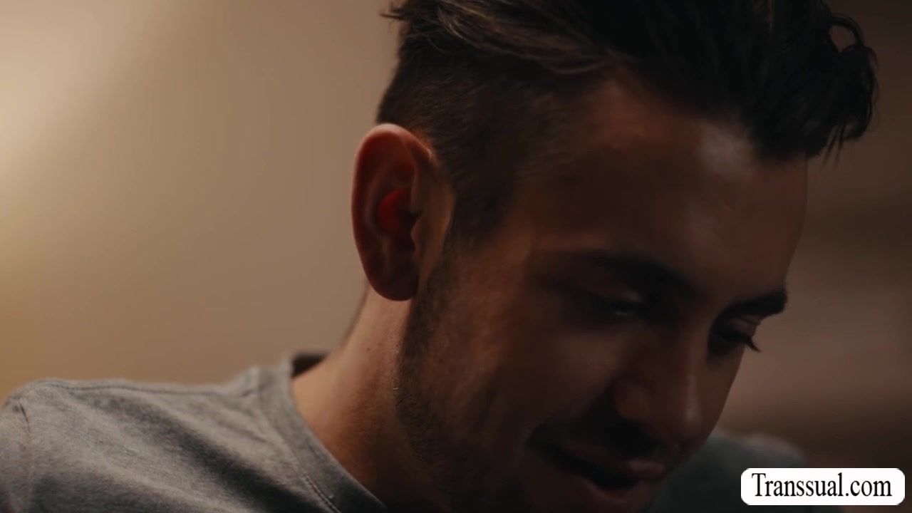 TS Natalie Stone goes to the room of her stepbrother and they start kissing each other on his bed.After that,she throats his hard big cock passionately and in return,her stepbrother fuck her tight ass so deep and hard.
