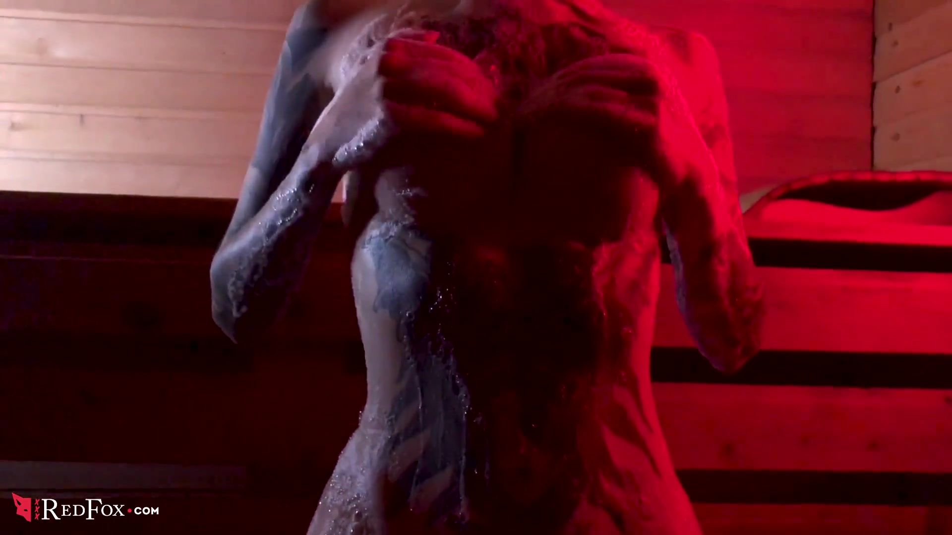 Tattooed Girl Real Red Fox Footjob and Handjob Dick Boyfriend in the Bath