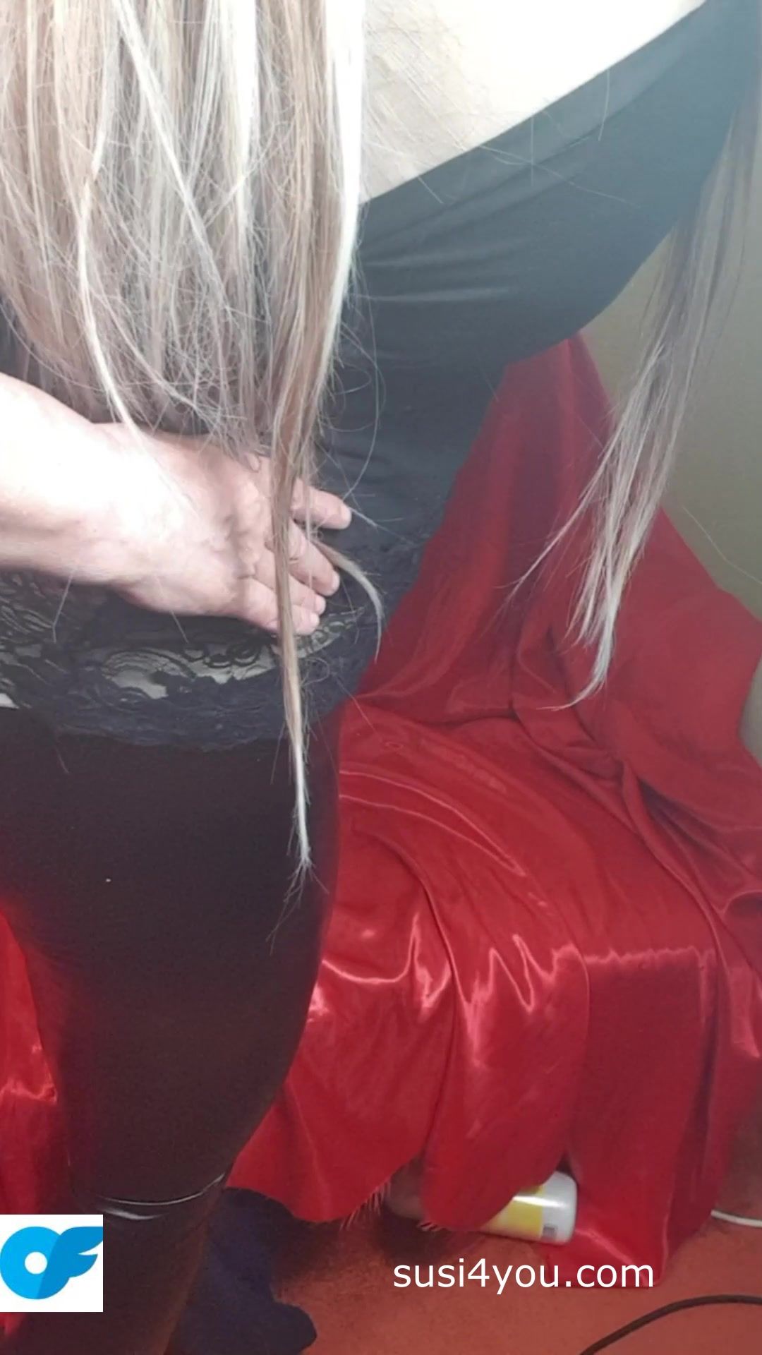 Susi is wearing black latex