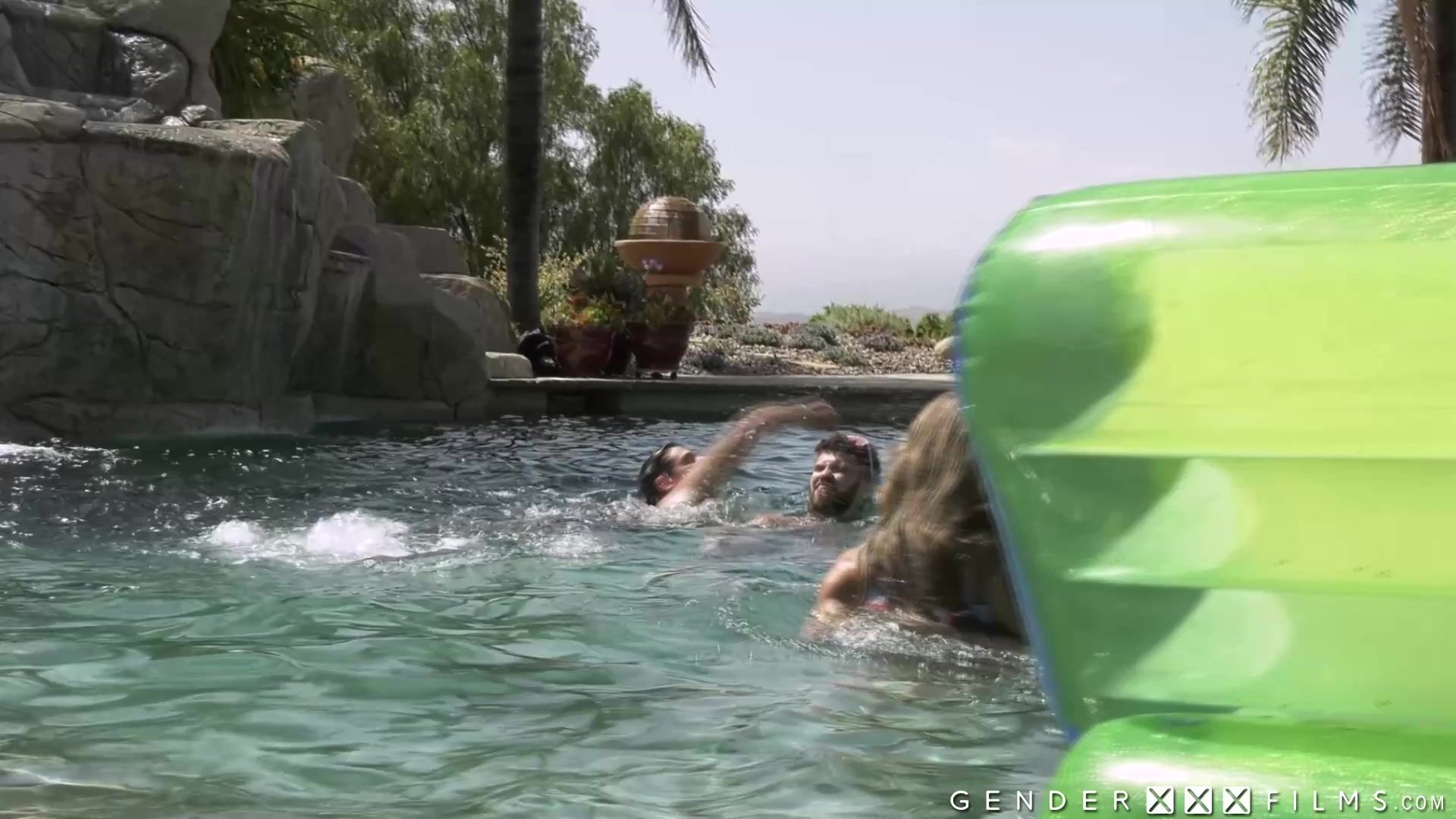 Next level partying with 3 guys and 4 shemales in this pool party dick only fuck fest