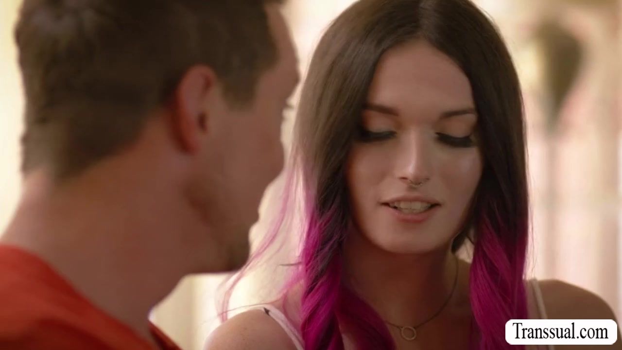 Skinny Shemale welcomes her stepbrother after not seeing each other for many years.After that,they start talking on the couch and then they get horny and start kissing each other.Next is,she throats stepbros dick and lets him lick and fuck her ass.