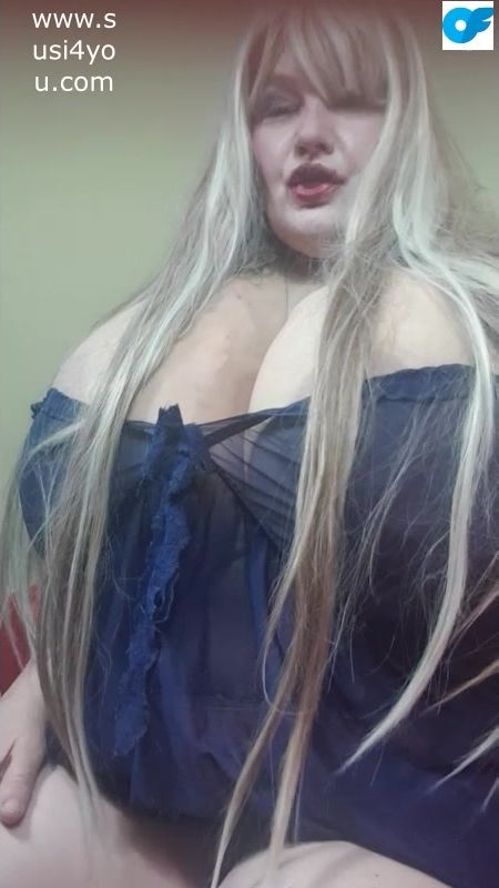 Susi is wearing blu lingerie She i s taking off her underwear showing fat cup k tits watch her rubbing her big pussy Are you horny? Lets have fun such a nasty boy you have to cum Hear this smacking pussy big and fat and those monster big fat tits.