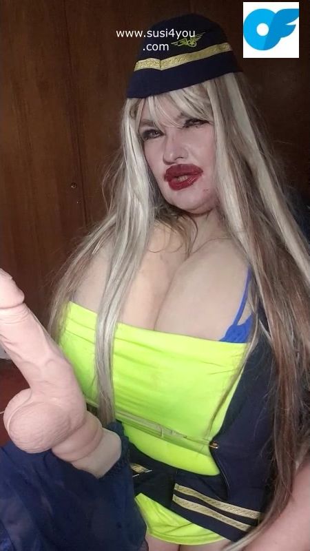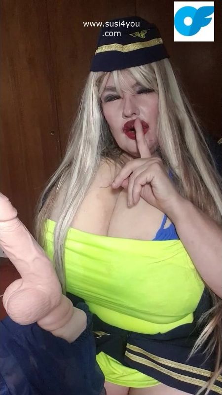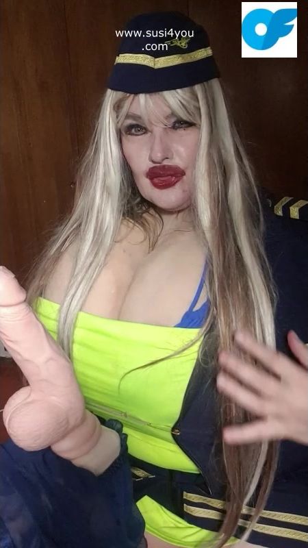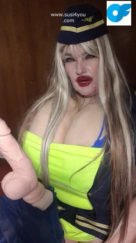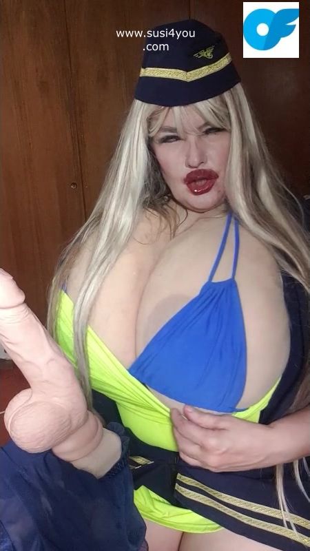 See susi i a nasty costume of a stewardess. She has a fat cock toy in front of her She is teasing you pulling out er tits# she is teasing you with her tits Then she is rubbing and squeezing your cock imagine... See the toy being worked by her dirrty stwardess playing giving you a nice joi