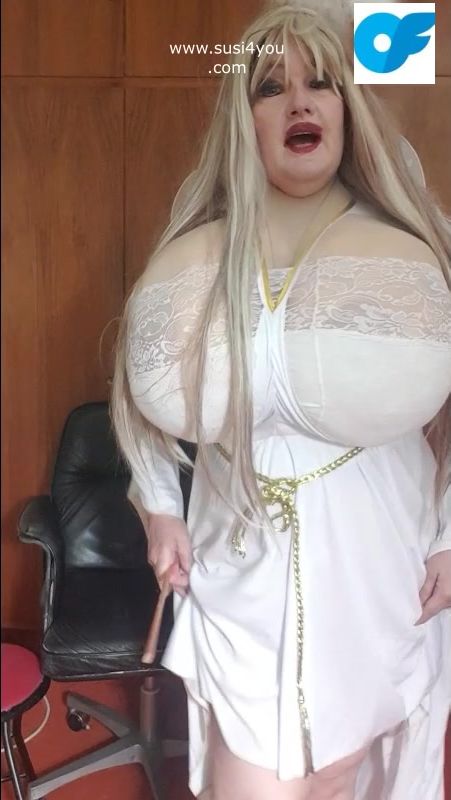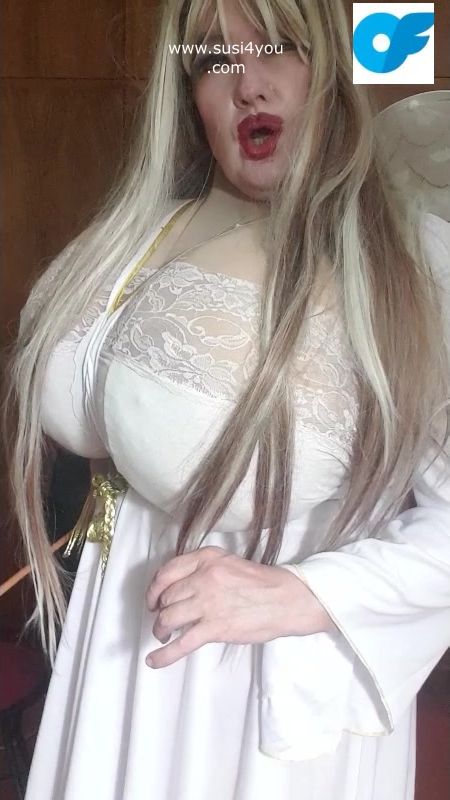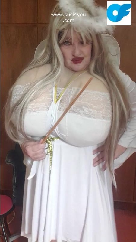 Susi is wearing a costume of an angel See this angellike sexy lady rubbing the toy and giving you some nice education with a stick in her hand haha nasty boy you have to cum for her enjoy it and cum for me.