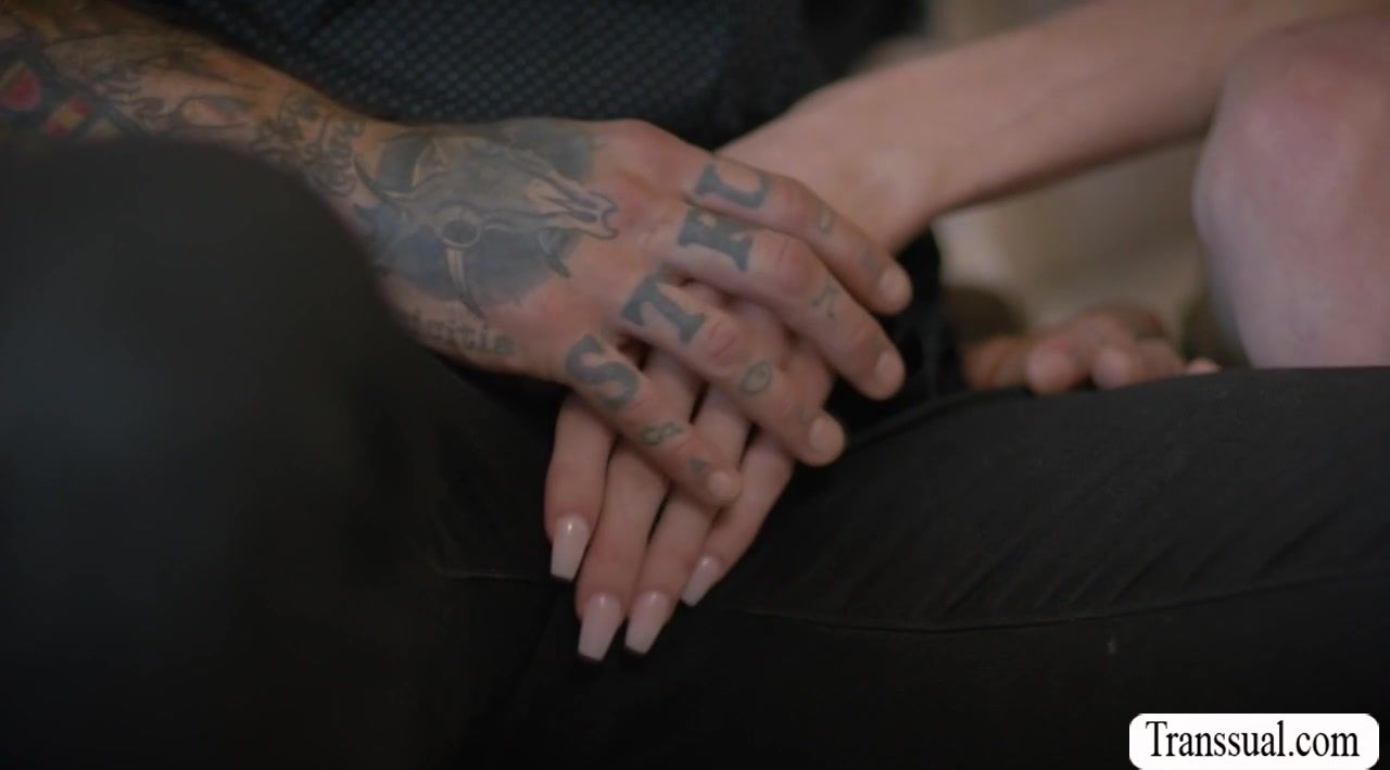 Tall Skinny Shemale and her new boyfriend are drinking some wine and they get horny.After that,they start kissing each other passionately and she then throats his hard big cock.In return,he licks her ass first and he then fucks it so hard.