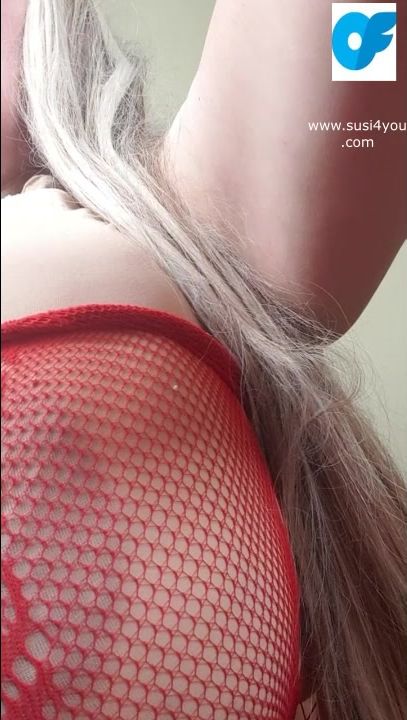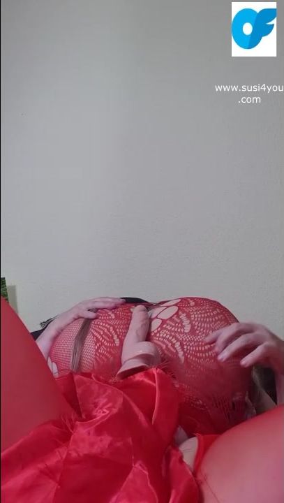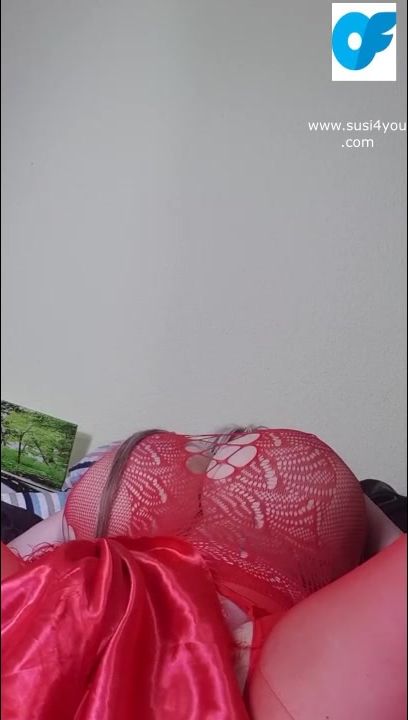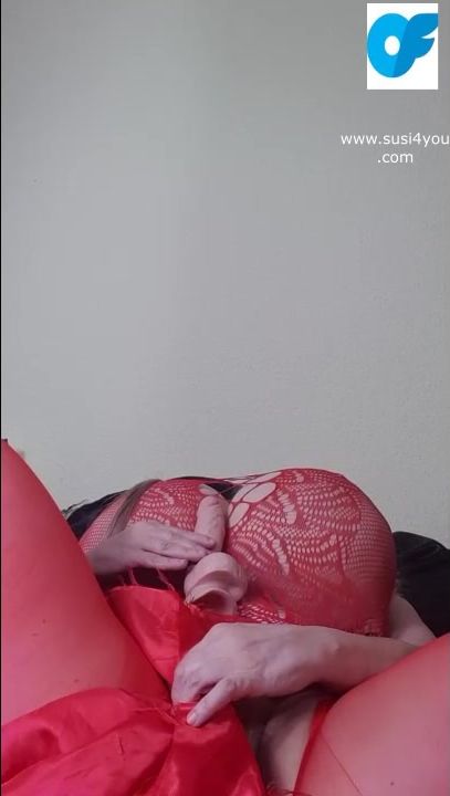 I am lying on my back Susi spreads her legs hear her moaning. Playing with toy in red fishnet pulling out fat tis showing them moaning lets cum together you like my red boots i have put them on just for you.