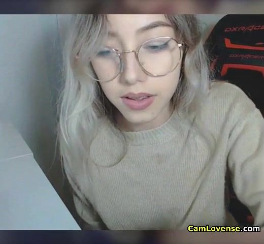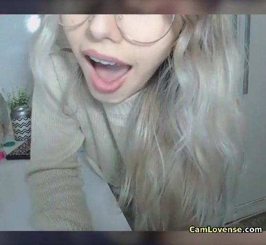 Busty Blonde Chick with glasses playing around with her Toys on Webcam live