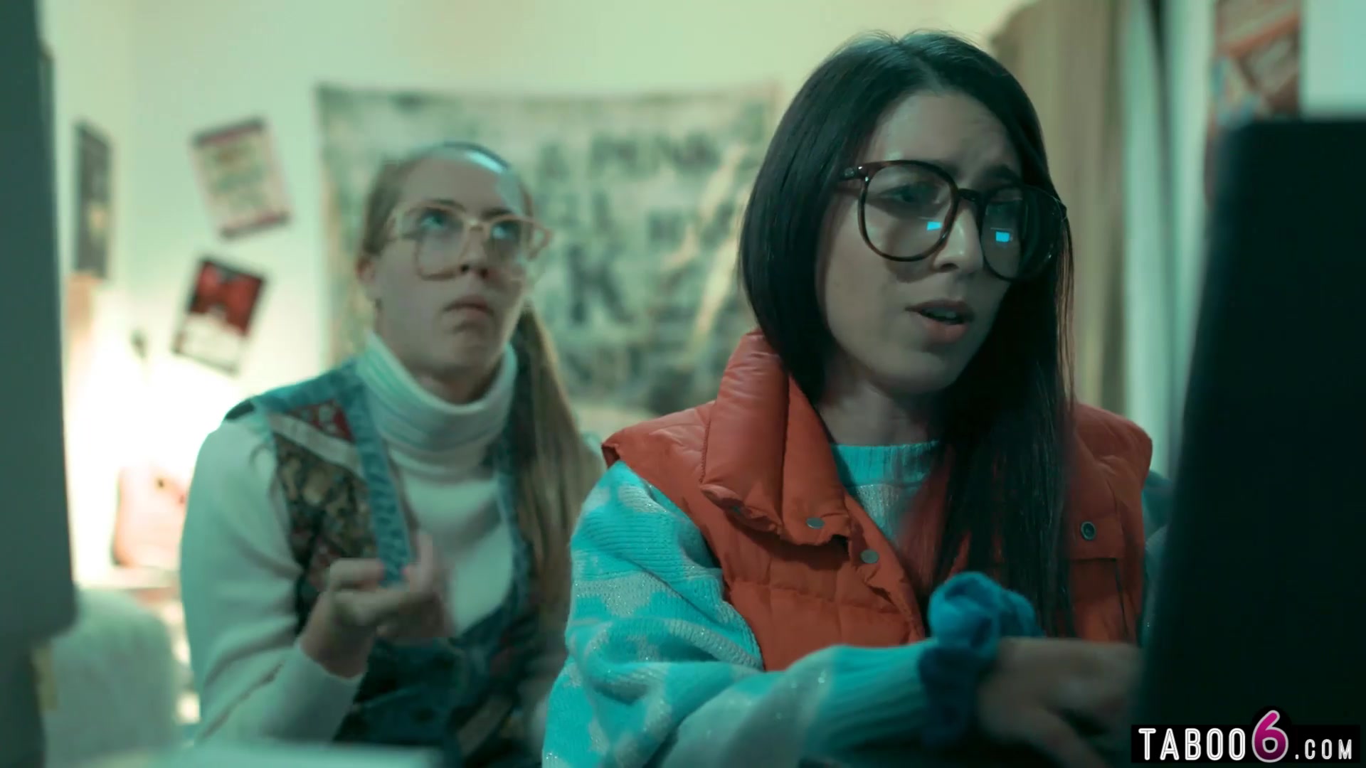 Lesbian teens Cadence Lux and Serena Blair create the perfect MILF Kenzie Taylor on their computer and after a explosion she became alive and taught them some very handy lesbian skills on how to eat and finger pussy and how to properly scissor each other