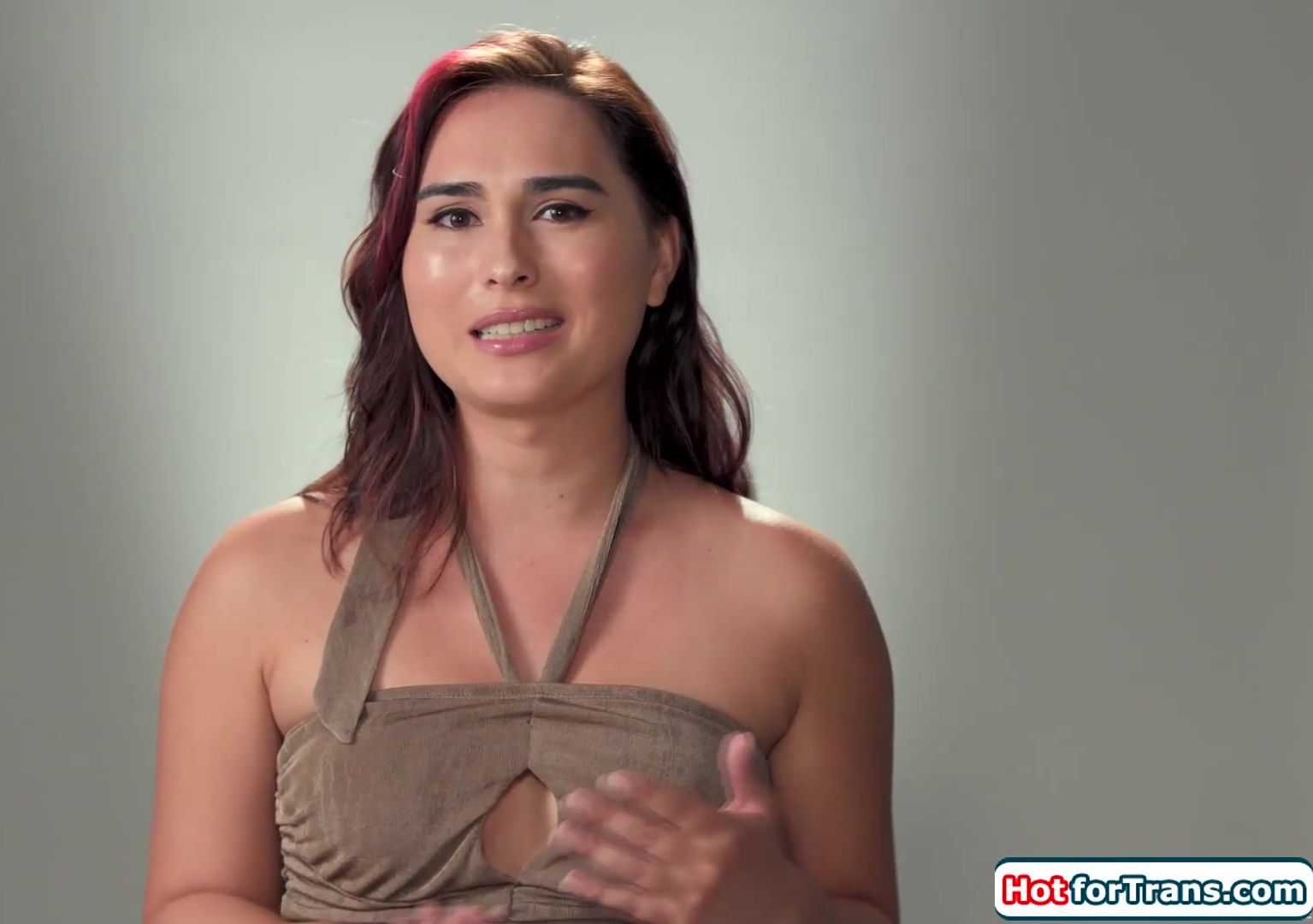 Big tits asian trans lady Ember Fiera gets interviewed before shes going for her solo masturbation.The busty brunette tgirl lies on her back while she gives herself a handjob.The transsexual babe jerks off her shemale cock until shes about to cum