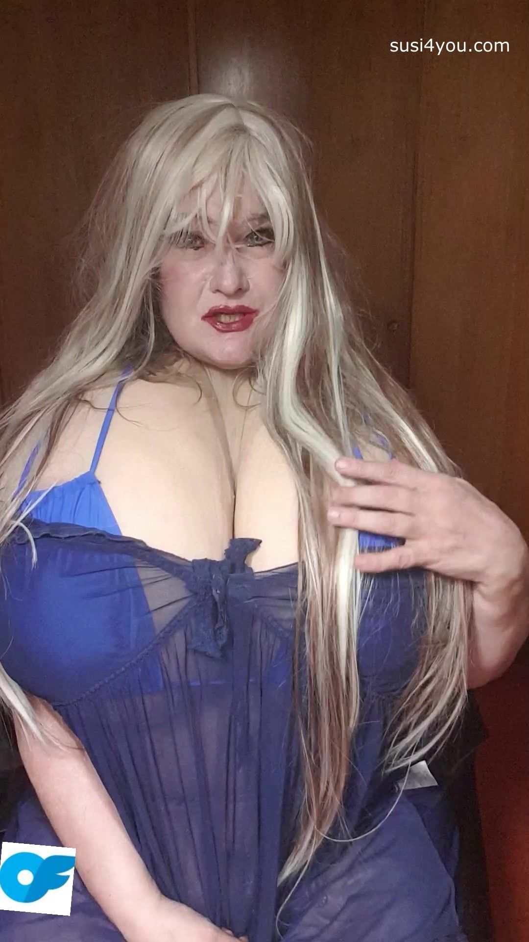 Oh my god, such giant boobs in blue underwear. Susi is so horny and wants to show you everything. she pulls down her underwear and takes out her boobs and hangs them down See those fat tits bouncing suck them and come so huge cup k tits ready for you to play.