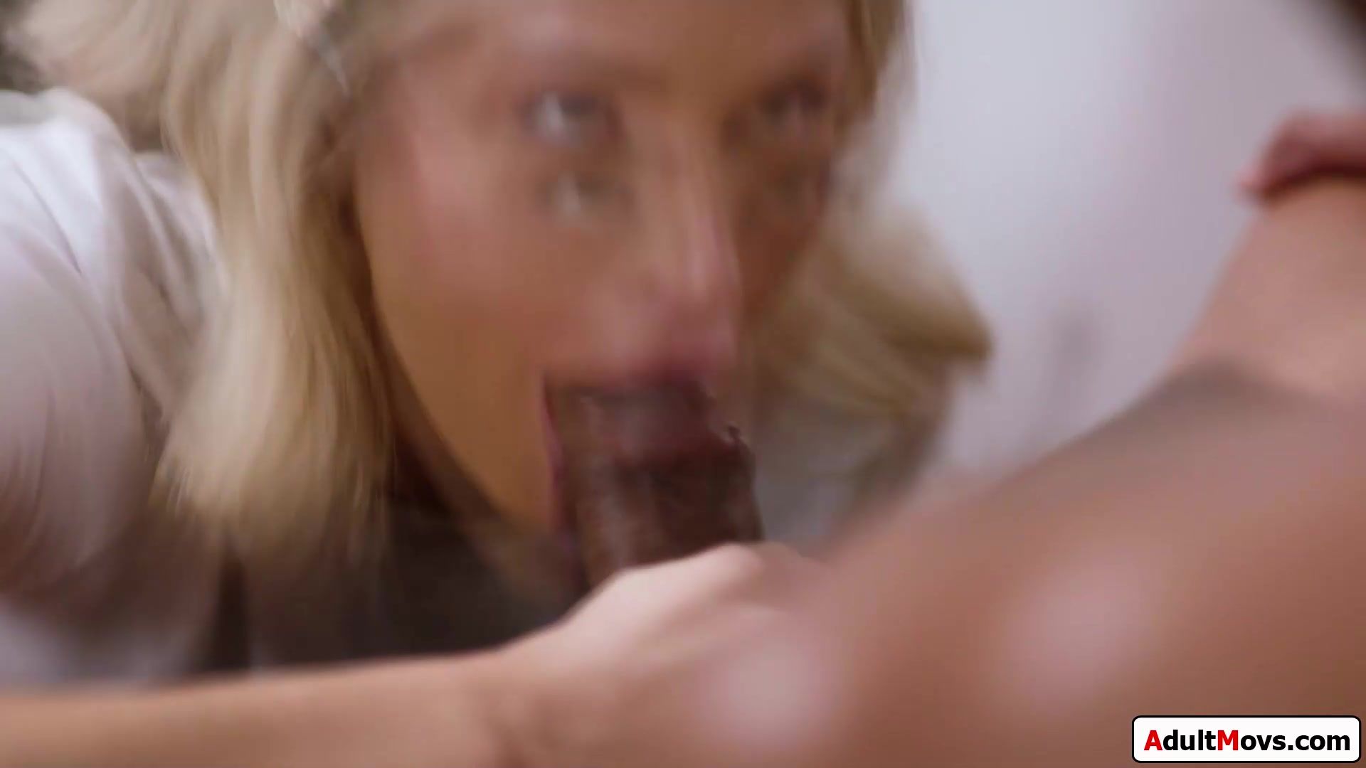 Big boobs student is distracted by her black teacher and makes her move.The busty blonde kisses him and deepthroats his big black cock and gets her shaved pussy licked.The interracial old and young couple fuck and the coed rides on his hard dick