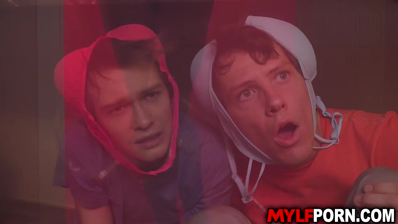 College teen nerds Matthew Bailey and Rion King invented a hot busty MILF with weird science and experience a hot 3some fuck with her in the bathroom.They take turns in pounding both her mouth and MILF pussy and definitely enjoyed the best sex of thier lives.