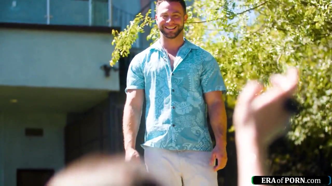 Pool cleaner checks out a busty milf and the cheating wife gets horny.She pulls out his big cock and deepthroats it.They kiss and then the big tits brunette is titfucked.Then gets banged outdoors as she rides his dick and masturbates her shaved pussy