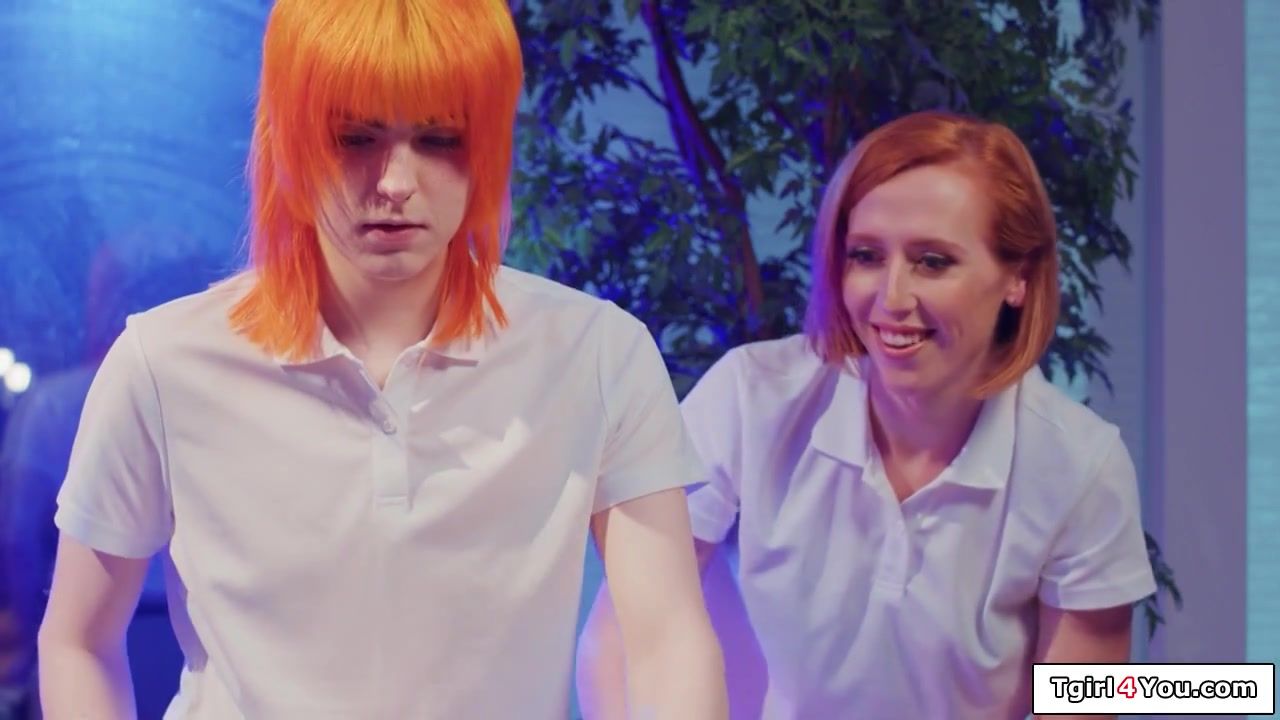 Small tits tgirls Shiri Allwood n Jean Hollywood give a massage to a busty girl and gets horny.The redhead trans fingers her shaved pussy as the big tits blonde deepthroats a tranny small cock.The shemale fucks her and then the other ts barebacks her