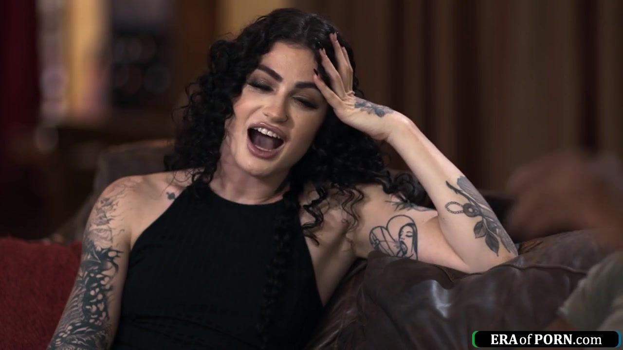 Black guy catches tattooed girl masturbating and the horny babe asks him to fuck her.They kiss and the small tits babe pulls out his big black cock.The brunette gets deepthroat facefucked and he licks her pussy.Then shes banged riding his dick