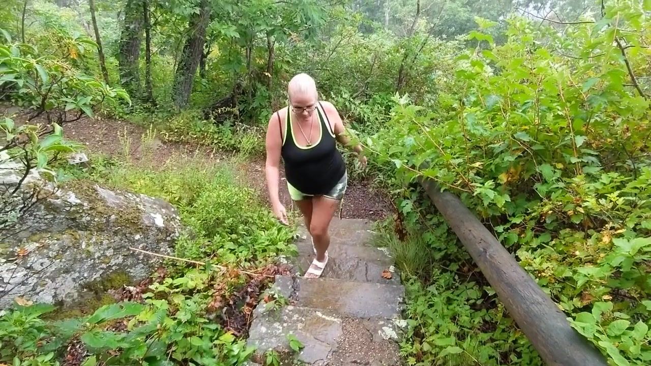 Blowjob outdoors in public hiking trail! Cum in mouth POV