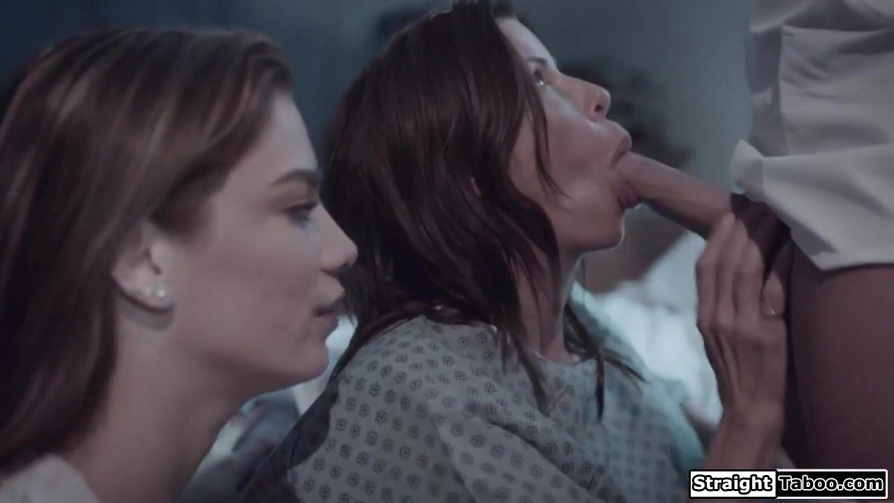 Psychiatric patient hallucinates with her teenage self and joins her in a 3some with the hospital orderly.The big tits milf gets deepthroat facefucked and then the guy fucks her as shes on top of the small tits girl.Then the older woman gets banged