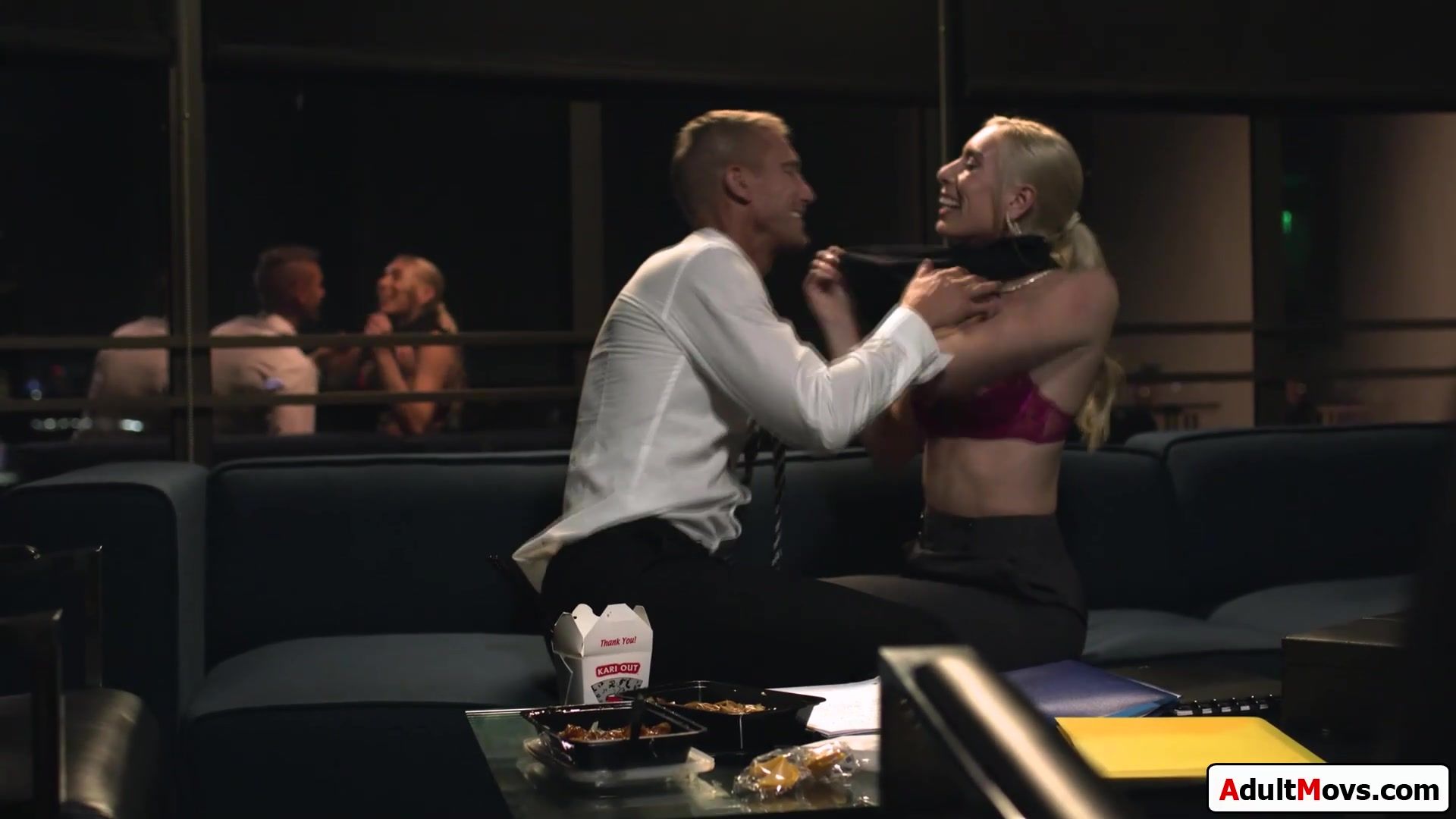 Boss cheats with younger blonde intern and the old and young couple kiss.He sucks the babes tits and masturbates her while shes sucking his big cock.The tall busty cutie spread to get her wet pussy licked.She climbs on his hard dick to fuck him