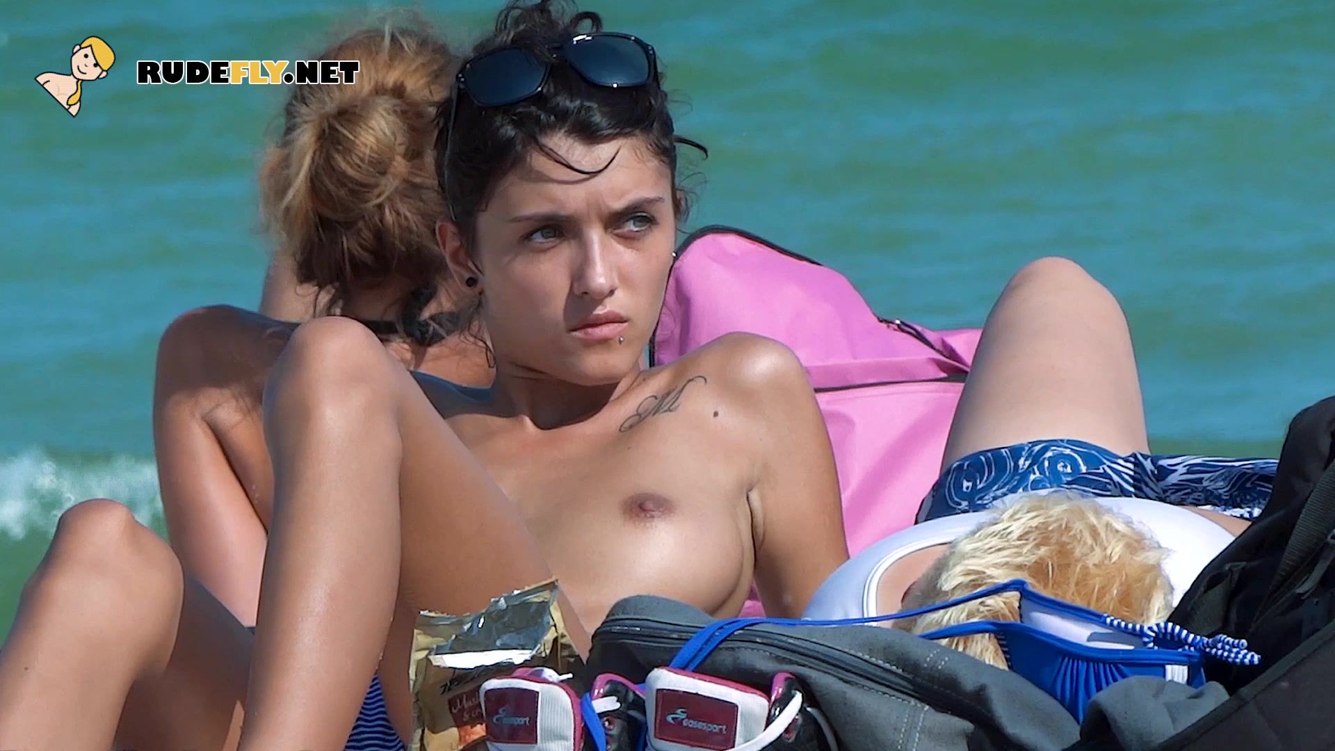 Naughty young nudist babes caught on the beach on a hidden cam