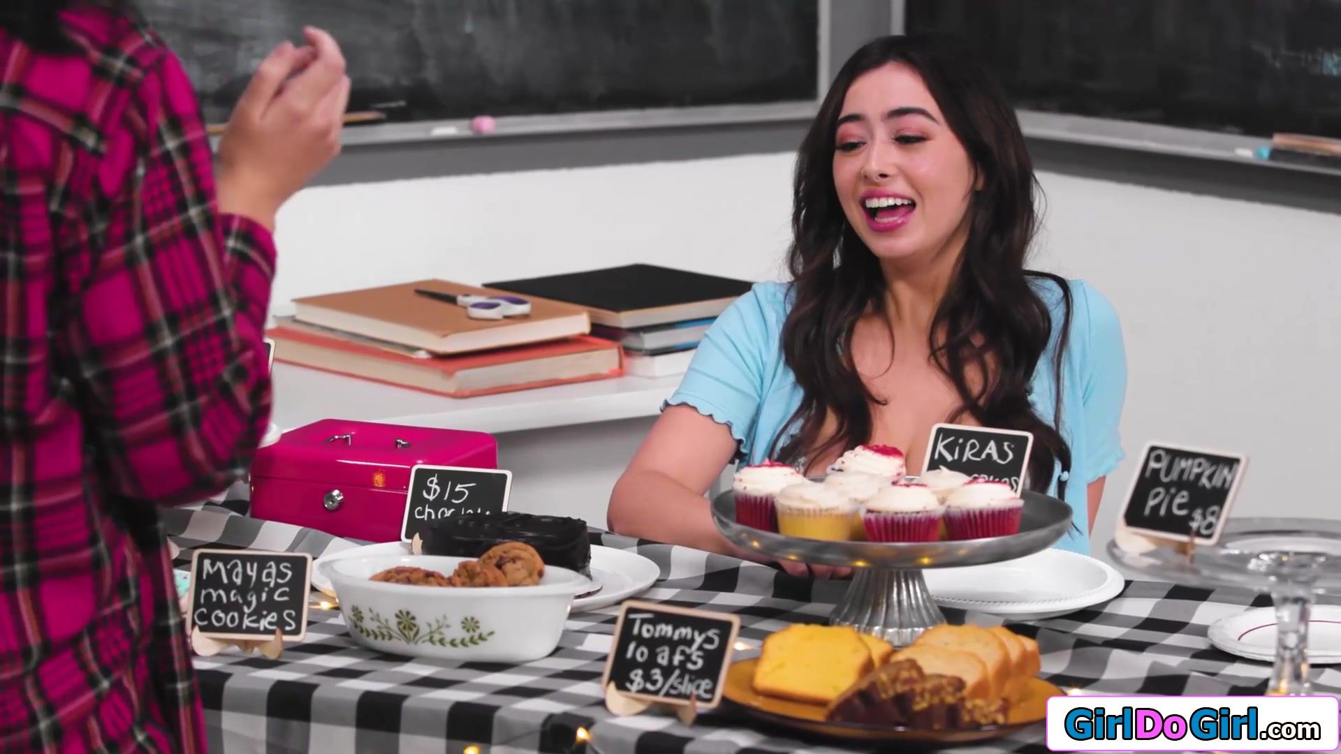 Busty stepmom thinks some new energy will improve her stepdaughters bake sales.The big tits milf licks the big boobs teens pussy while she sells out.The old and young lesbian couple is still horny so they kiss and the petite blonde cougar gets oral
