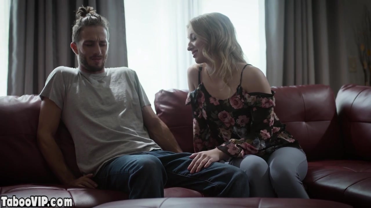 Neglected blonde MILF Aunty Riley Reyes with natural tits and big booty threatens to kick big cocked nephew out of house unless he taboo fucks her juicy hairy pussy hard