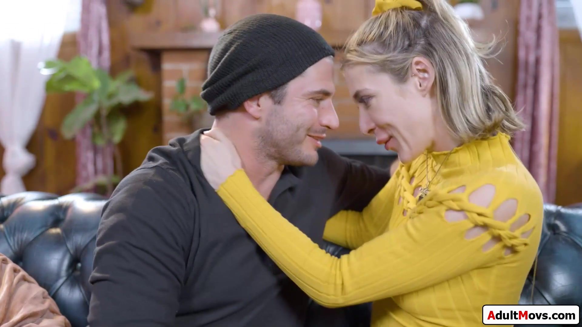 Blonde invited a hot guy over.Both are very nervous on their first date but also very horny.The couple makes out and the babe deepthroats his big cock.She rides on his dick until she bursts out her squirting orgasm and lets him lick out her pussy
