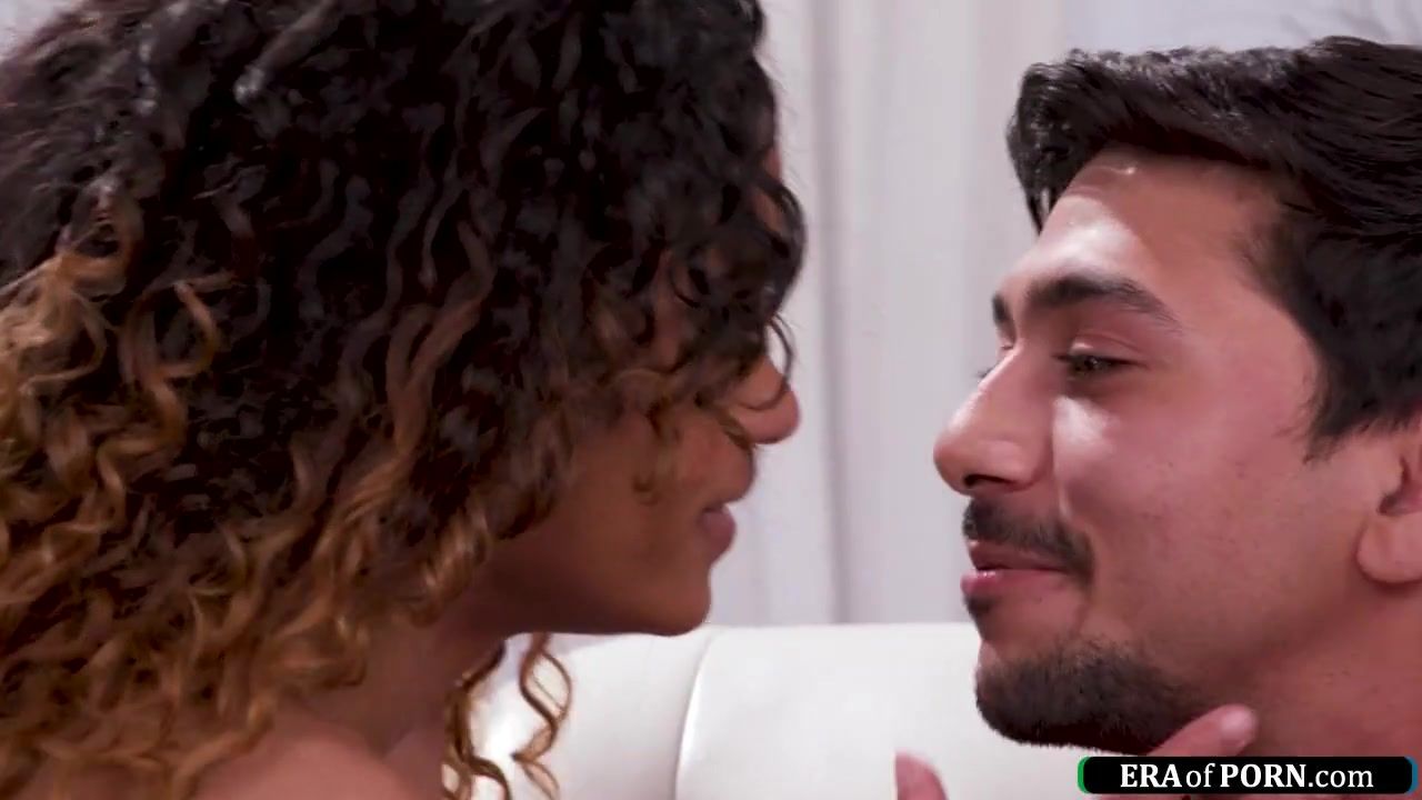 Petite ebony girl calls a busty blonde to have a threesome with latino boyfriend.They deepthroat his big cock and the big tits babe rides his dick.Then the small tits black brunette gets banged as she gives her oral sex and fingers her shaved pussy