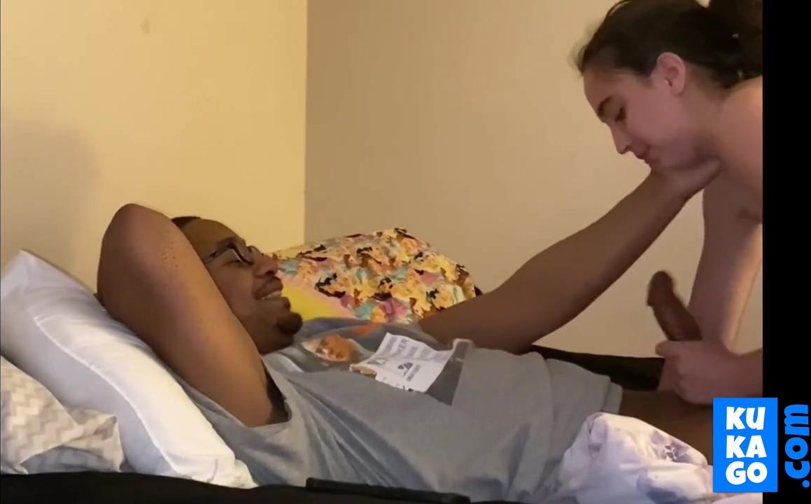 Girl licking my cum off her fingers after cowgirl riding my dick and fuckin