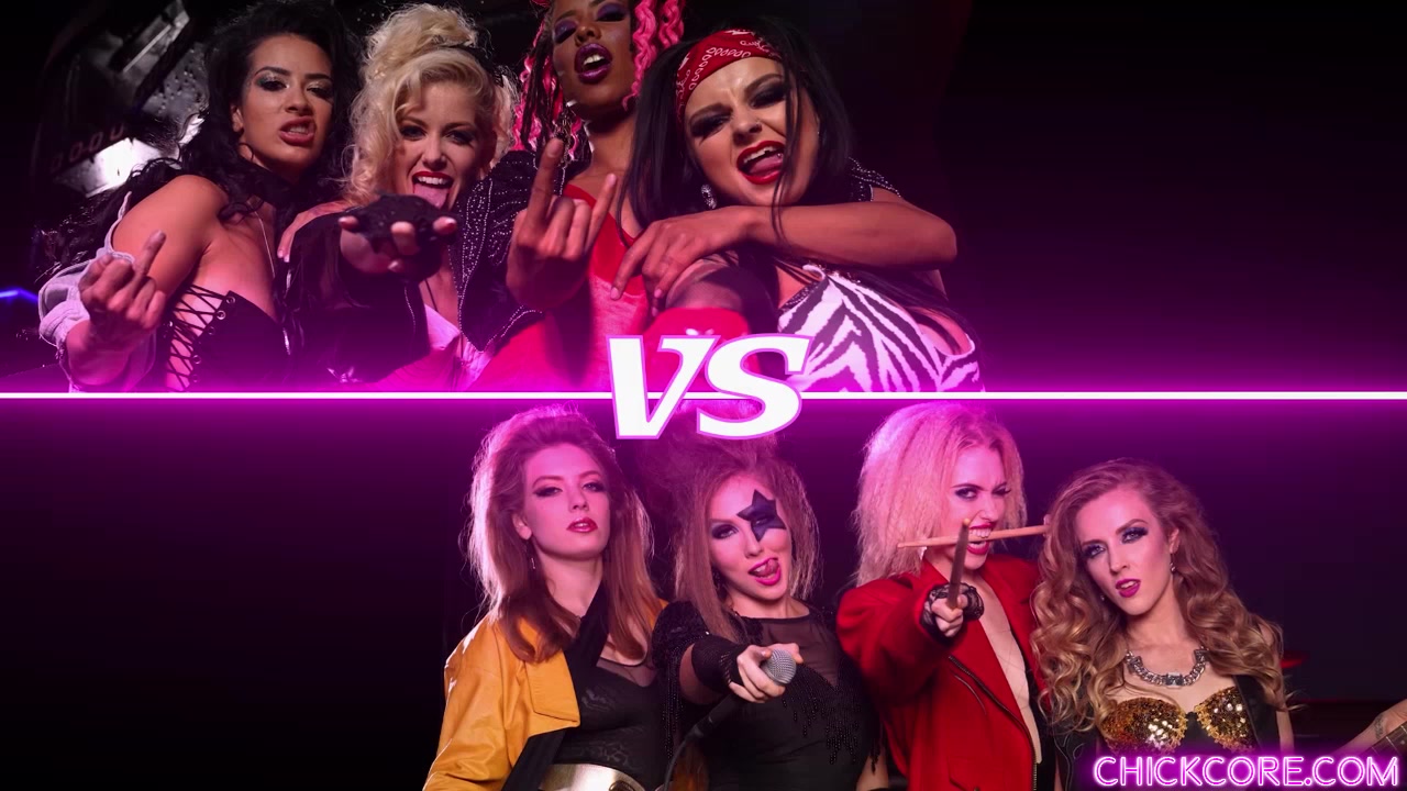Sexy Lesbian rockstars Charlotte Stokely,Lena Paul,Katrina Jade,Karla Kush show off their hidden talents in a hot lesbian orgy showdown that will sure rock you like a hurricane.