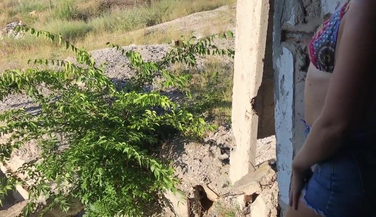 Naughty slut fucks ass adult toys on handjob an abandoned construction site dildo