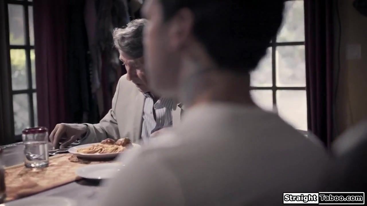 Stepbrother catches stepdad and stepsister fucking and the small tits babe asks to have a 3some.The brunette deepthroats their big dicks and the older man facefucks stepdaughter.He bangs her rough as he masturbates her hairy pussy and she gives a bj
