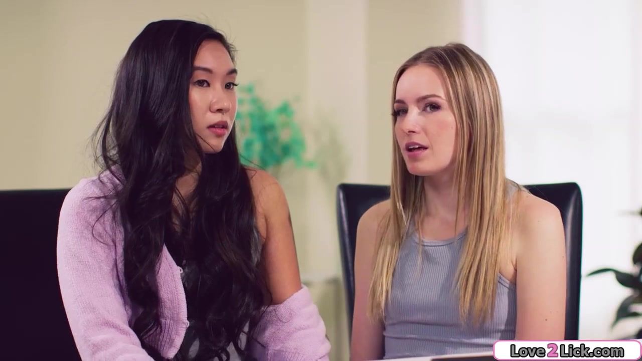 Big tits shrink asks to have a 3some with asian babe and small tits wife to overcome anal issue.The milf asks them to masturbate each others cunts and rims them.The petite brunette anal fingers the blonde babe as the busty shrink gives her oral sex