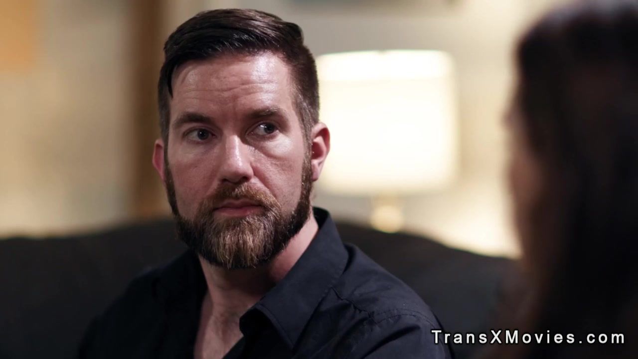 Chris Epic visits sexy brunette shemale Jenna Creed in her loft and after little talk she gets his hard and big cock in her mouth then in the ass on the sofa