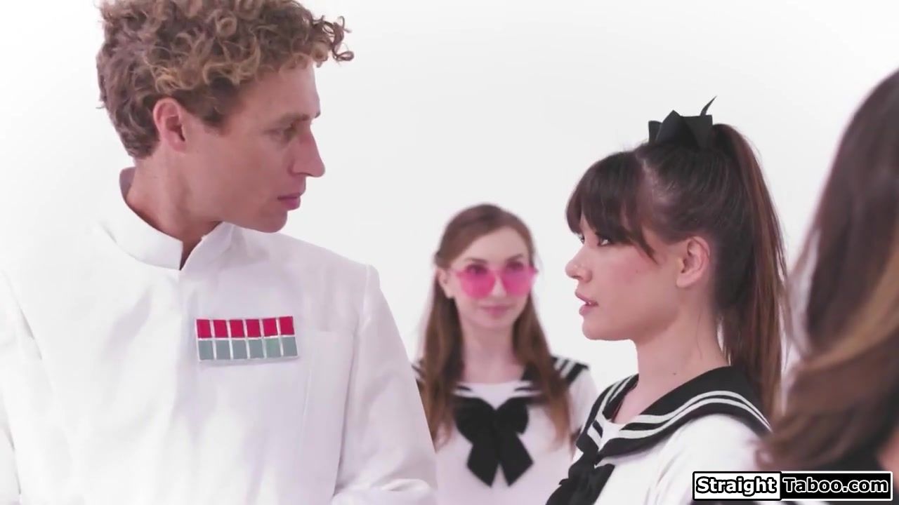 Bus driver has a virtual reality orgy with 5 teen students.A petite brunette is deepthroat facefucked and the older guy bangs the small tits blonde as an uniformed babe gives oral sex to a big tits girl.He fucks her rough and licks her shaved pussy