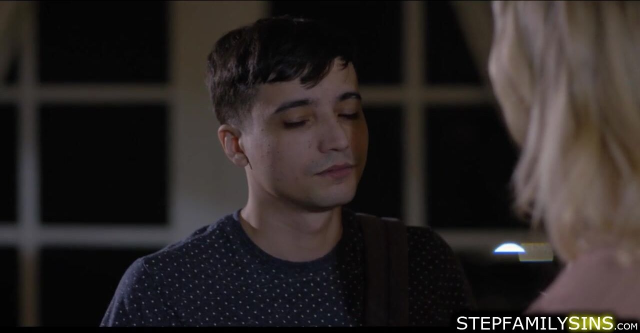 Blonde milf is giving her hard working stepson in laws bro a surprise.She relieves his stress by giving him sloppy blowjob.The guy grabs her big tits then goes down licking her hairy pussy.The cougar lies on the couch while he is fucking her hard