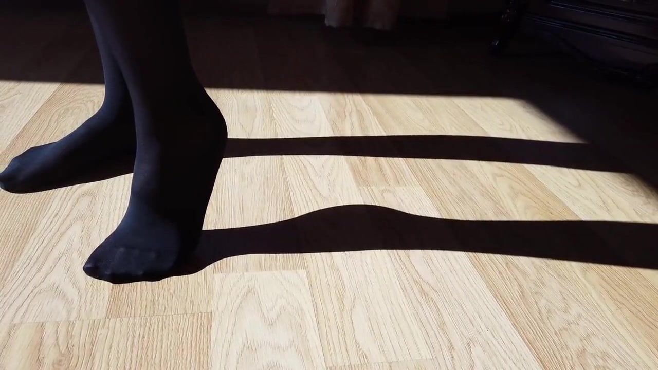 Passionate milf in black pantyhose rubs her footjob wet babe pussy and gets orgasm close up