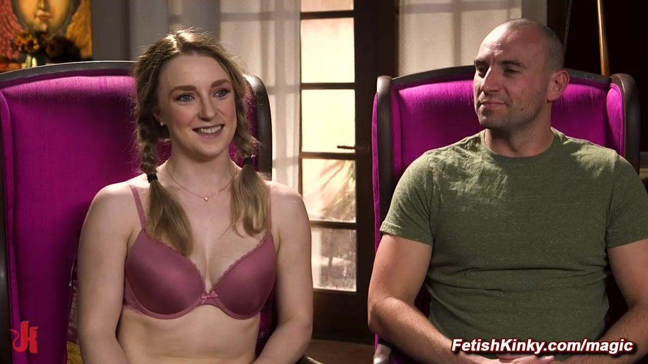 Hot brunette wife Kate Kennedy with fetish secret asked her husband Stirling Cooper to blindfold and gag and bind her then hard flog and anal fuck with fingers and big cock