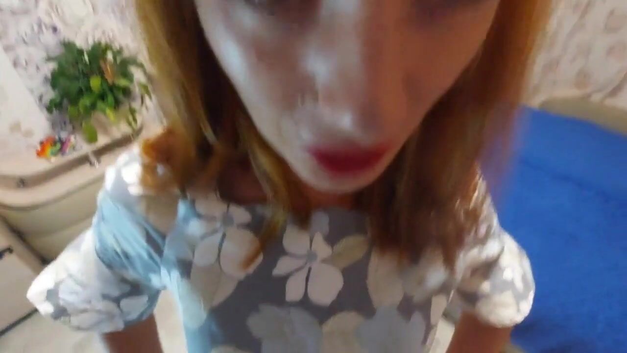 Scene girl squats on huge 10 inch dildo in purple ballet flats in